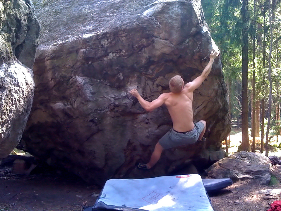 Miika Tuominen sending 'Dylan On Messias' 6C, during infernal heat wave