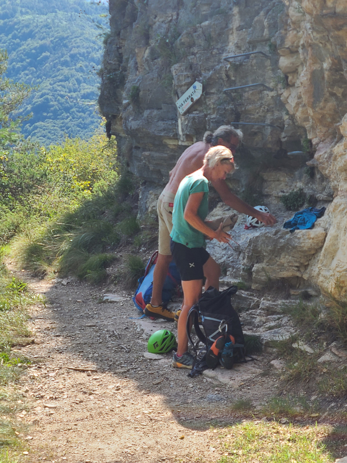 Checking the materials before climbing