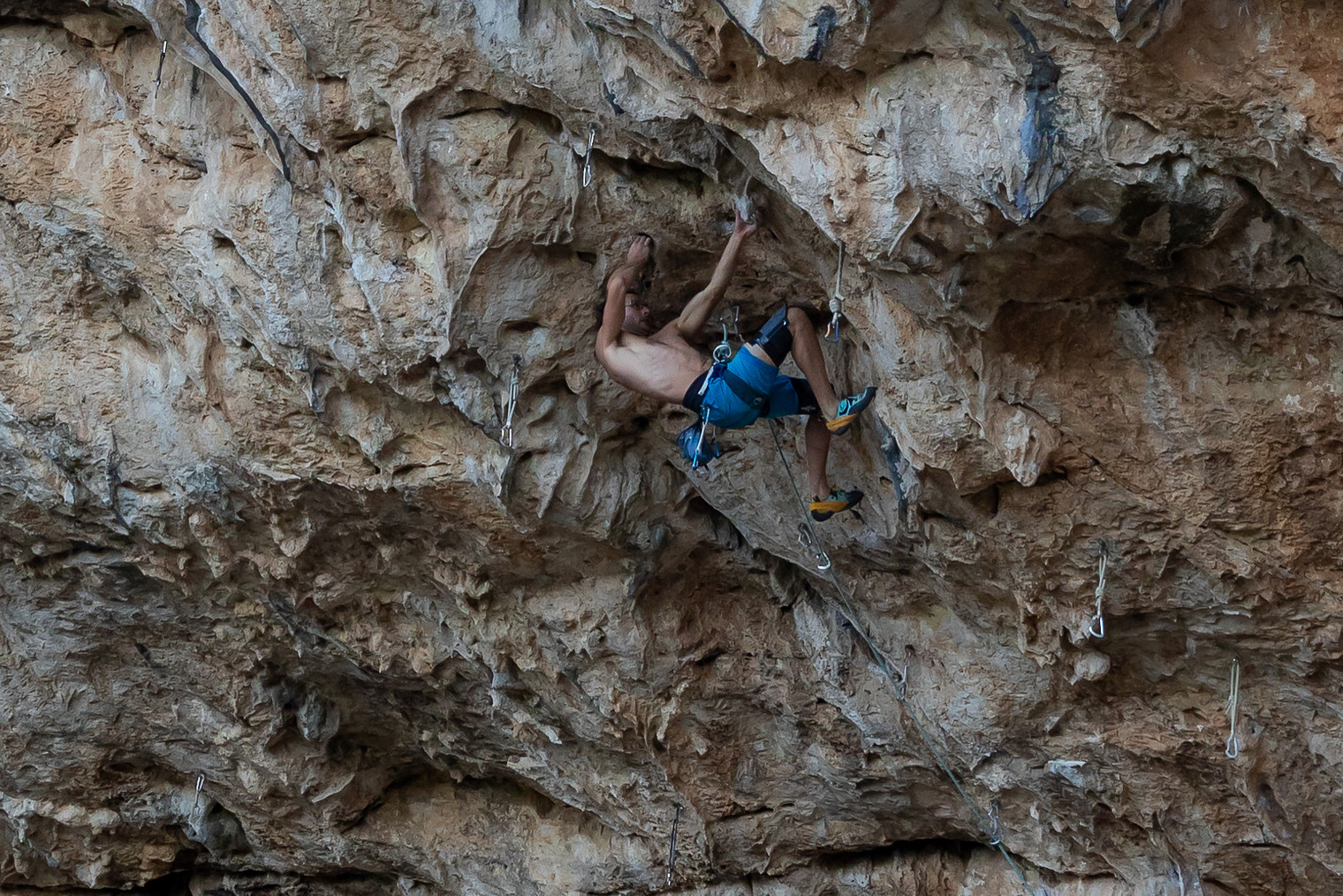 Henning on the classic 8a+ Mr.Fortissimo in the Chatzouri Cave