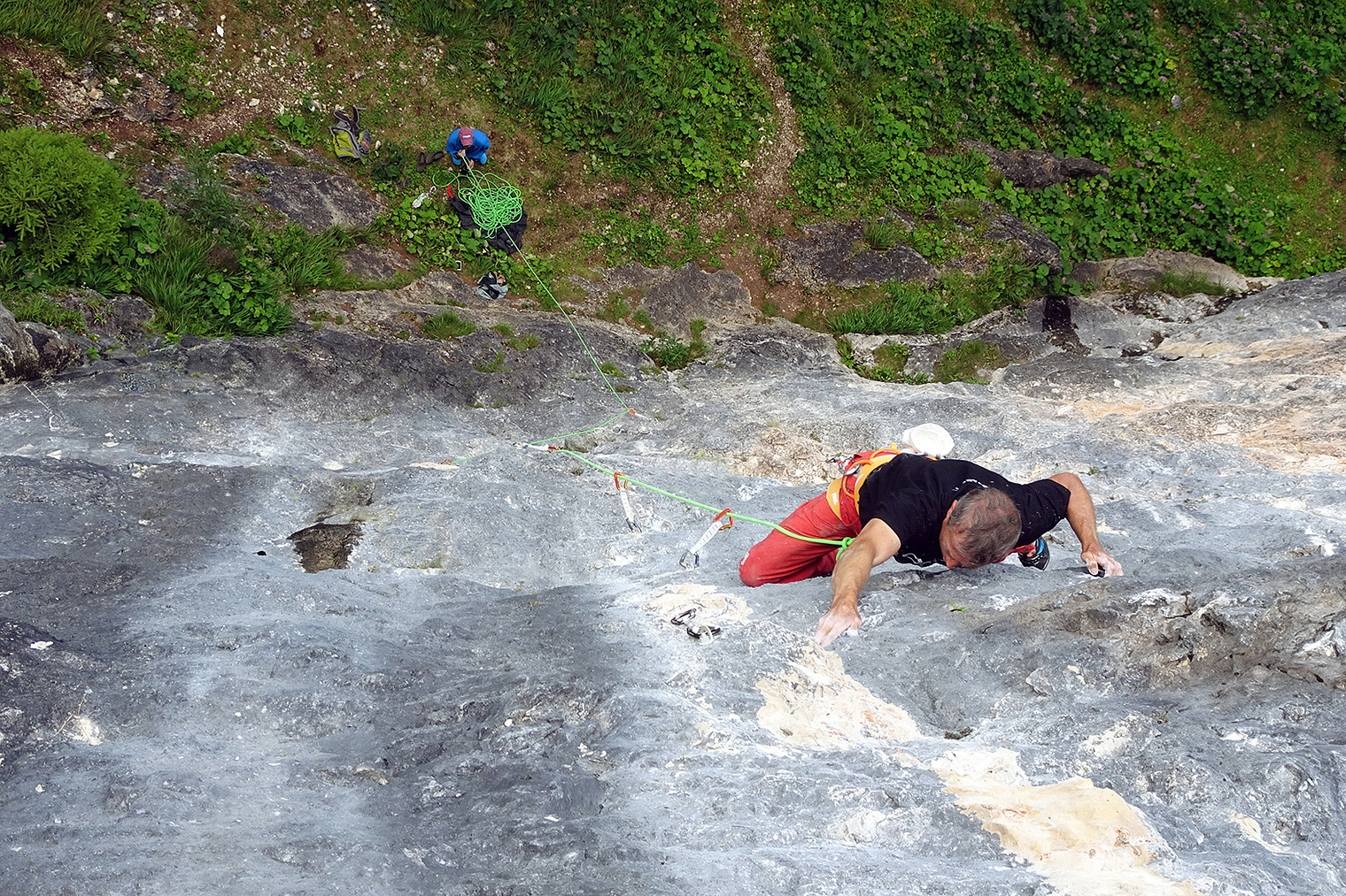Enrico Maioni climbing on "Birra media" - 6c