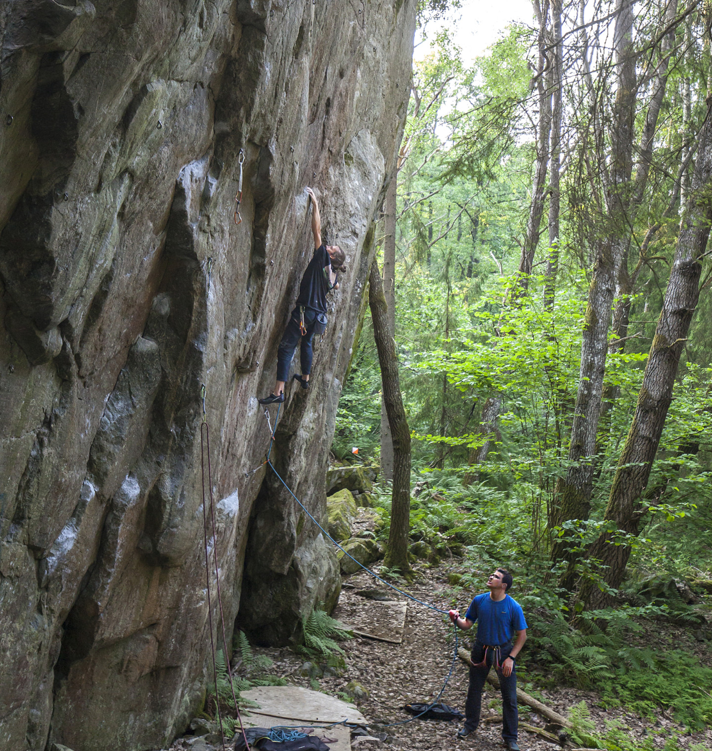 Tim Bohman testar för ett par år sedan. Alla vill inte vara med på bild så jag bytte ut säkraren mot en AI-gubbe. Han verkar dock ha glömt grigrin hemma, men det gick bra att säkra med handen bara.