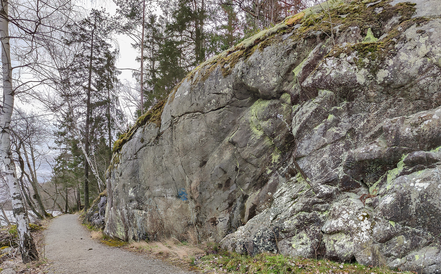 Överhängande vägg längs med gångvägen. Bra kvalité, bra höjd och bra landning.. Kan ge ett par boulders.