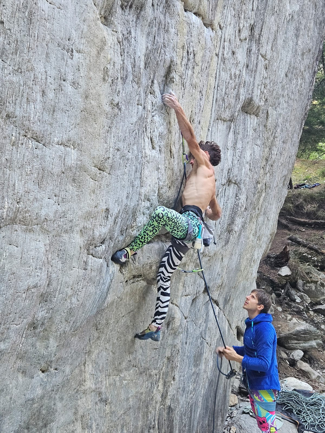 Alberto Bassini trying the initial boulder of the lines that begin in the center of the wall