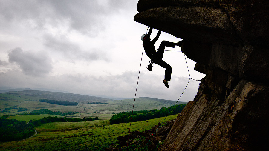 On Flying Buttress Direct, Peak District, UK