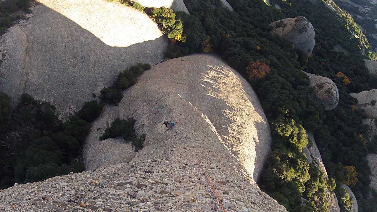 Henrikki Matilainen and Sari Nevala under the crux pitch of Boy-Roca.