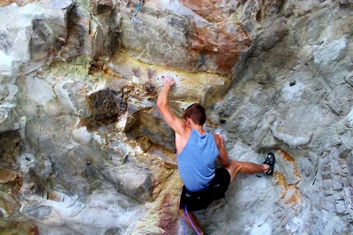 Dylan Edwards on “Dr. Strike and the Funky Bullster Meets the Hog Hole Hurricane” (5.12b)