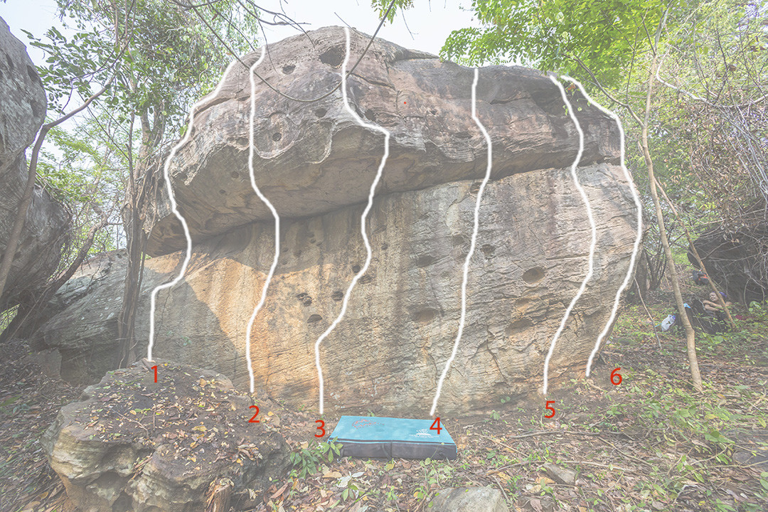 The Thunder Hat Boulder, Route# 3 Tears of hope V3+ and # 4 Stormy Day V3. The other one are projects so far. Meadow section, Nam Phong Bouldering. Thailand