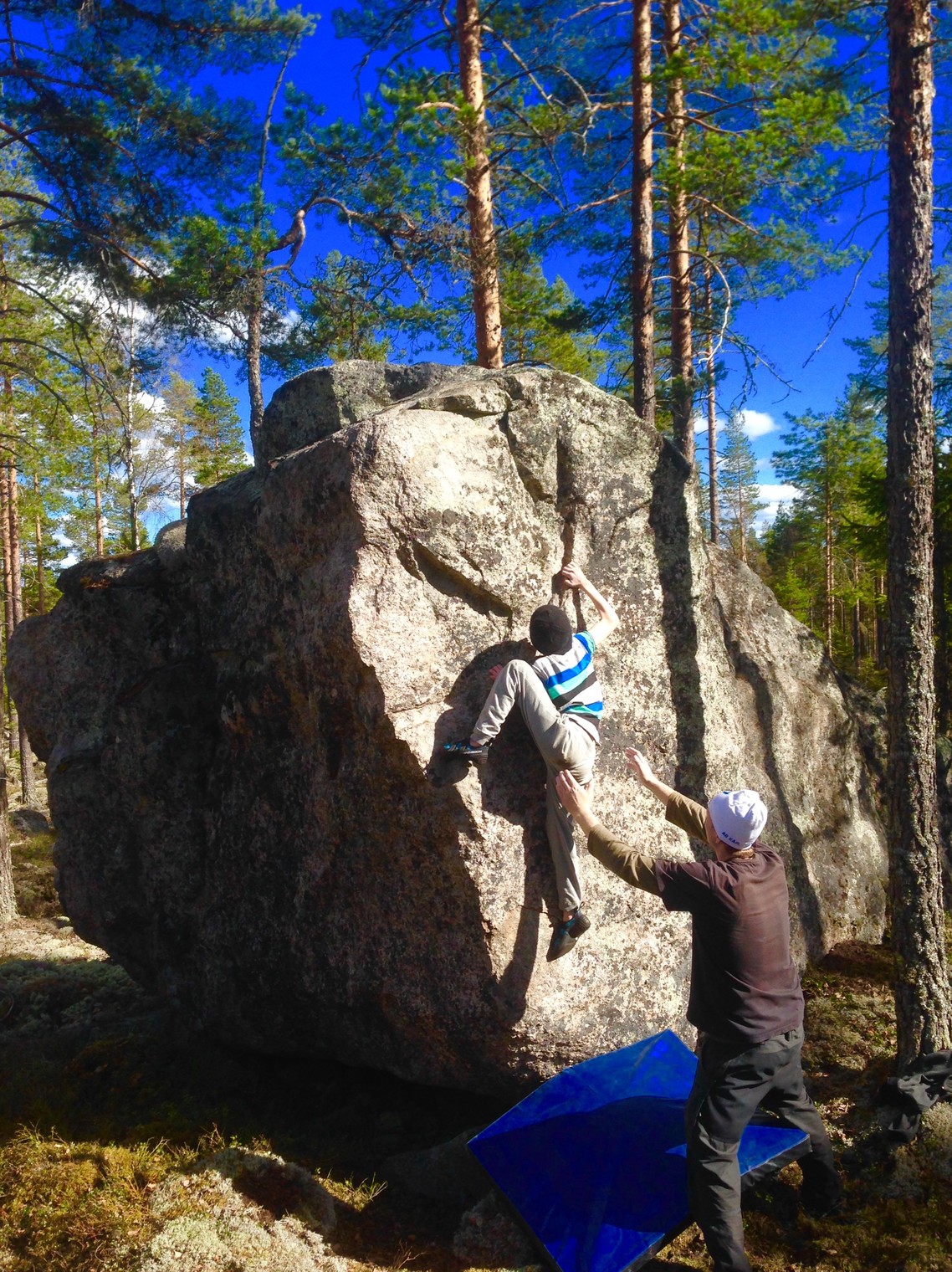 Benjamin klättrar på Greenpeace -Sectorn Lensberget